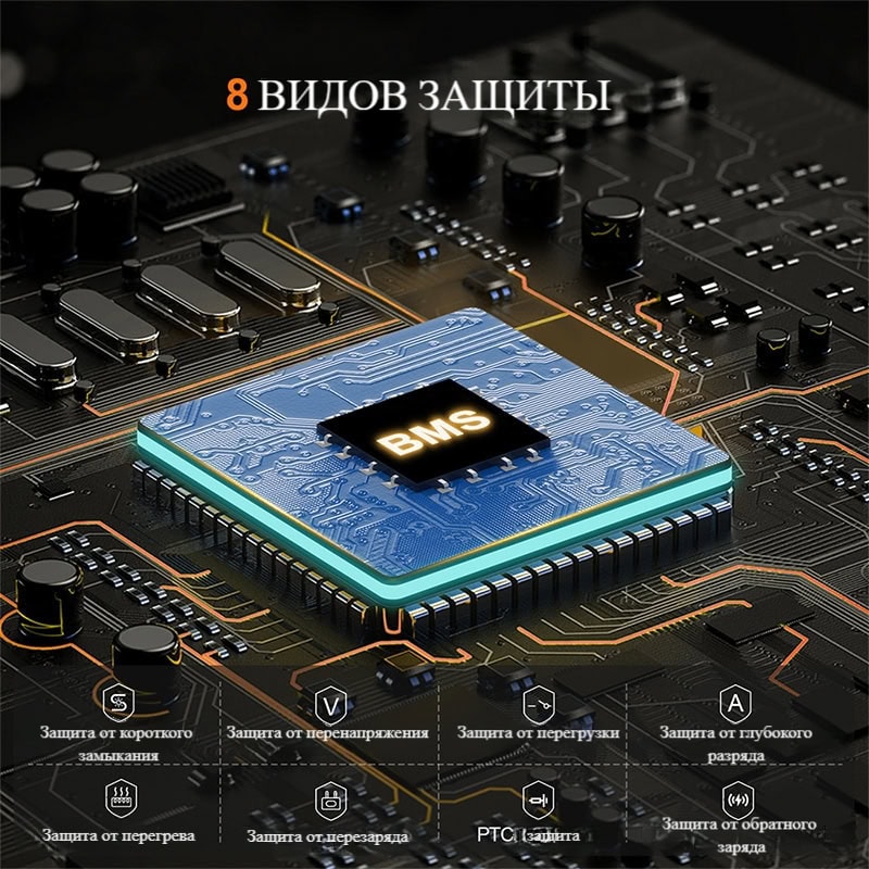 Встроенная BMS плата в портативных зарядных станциях SILA GT предназначена для обеспечения безопасности и долговечности работы станции и встроенного LiFePo4 аккумулятора. Она оснащена рядом функций, которые защищают от различных повреждений и обеспечивают надежную работу.